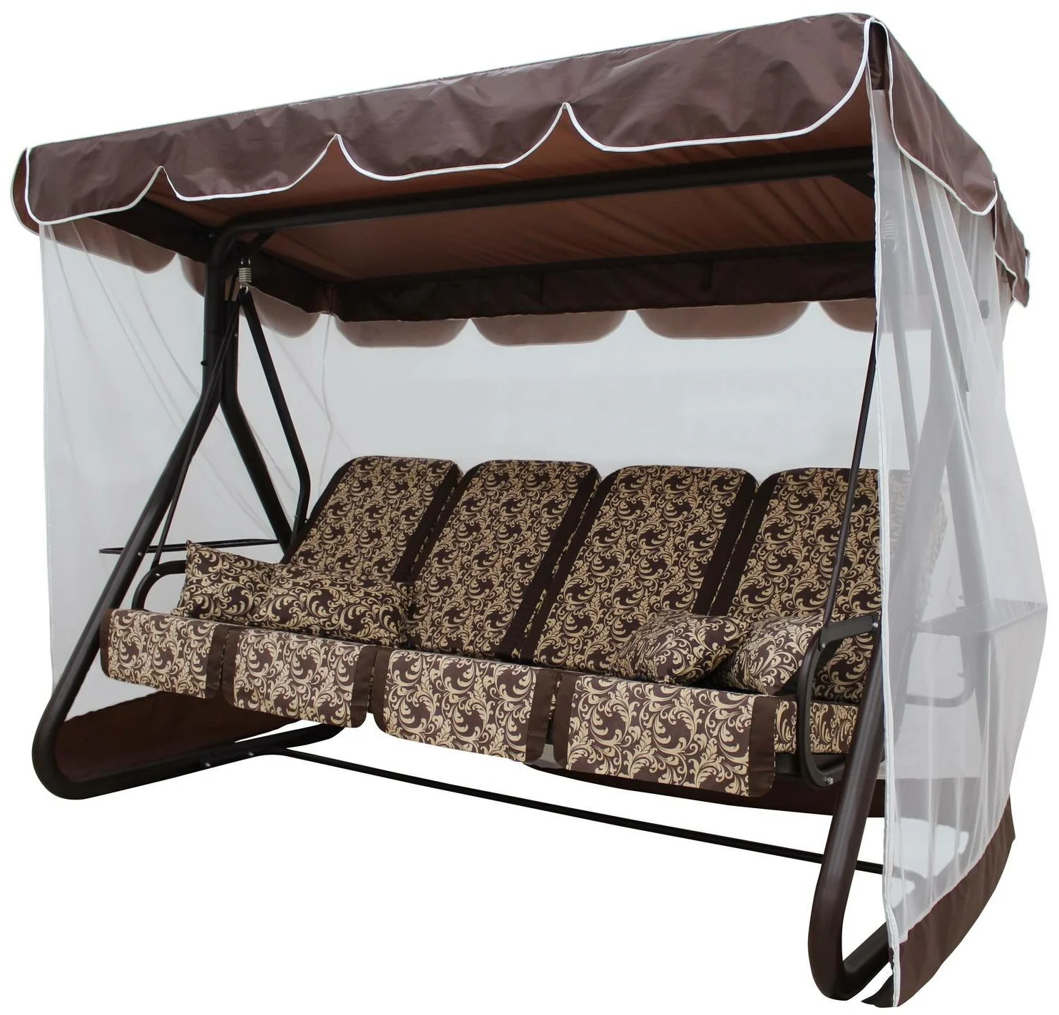 La balançoire de jardin quadruple convient à tous ceux qui aiment se détendre dans le luxe et communiquer avec les invités. Ils séduiront également les propriétaires d'une famille nombreuse.