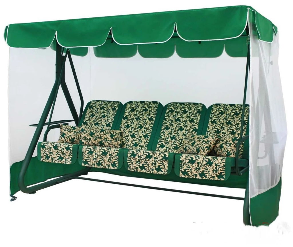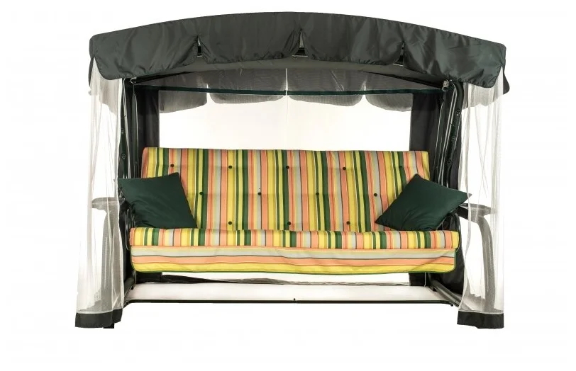 Produit fiable, élégant et durable. Il a une base en acier rigide. La capacité de charge est de 320 kg. Le dos est réglable. Le rembourrage du canapé avec des feuilles est en caoutchouc mousse et hivernant synthétique. La moustiquaire protège bien de la poussière, des peluches et des insectes gênants.