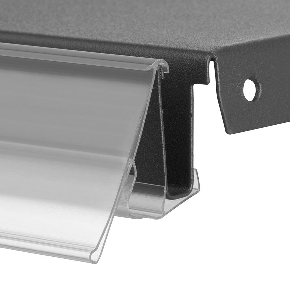 Le support du fabricant russe du modèle universel DBH39 est conçu pour être monté sur des paniers en fil et des étagères en treillis à l'aide de clips spéciaux. Il est produit incolore (transparent), a une longueur de 1000 et une hauteur de 39 mm, 6 clips sont nécessaires pour fixer un profilé. Ce modèle est vendu par lot de 50 pièces.