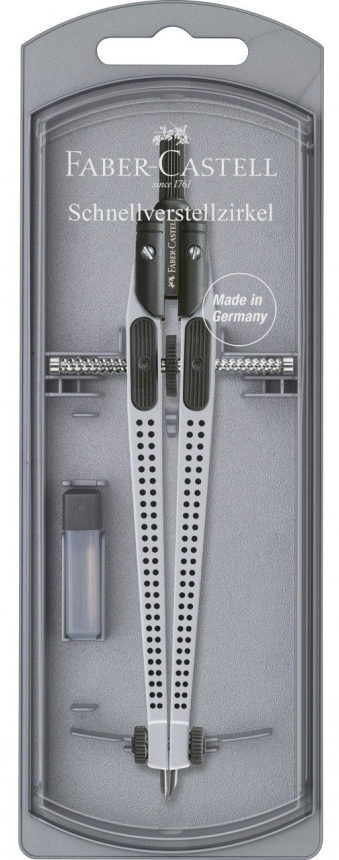 La molette de réglage vous permet de régler la taille avec une grande précision et fixe fermement les jambes, les empêchant de bouger. Le dessin est symétrique par rapport au centre du cercle dessiné. L'aiguille et la mine sont fixées avec des vis et peuvent être interchangées.