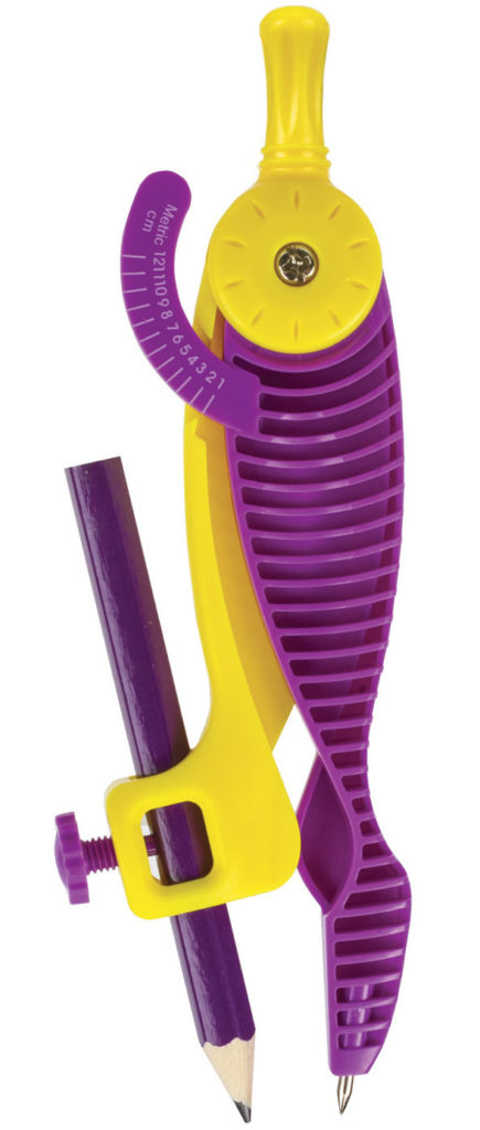 La conception originale de la boussole la rend attrayante pour les jeunes élèves. La conception des couleurs n'est pas seulement belle, elle est porteuse de sens. Le porte-aiguille et le tableau des tailles sont violets. Ils sont fabriqués comme un élément nervuré transparent avec des formes ondulées, évoquant des associations avec de fabuleux vaisseaux extraterrestres. Le crayon est attaché à une patte jaune, de forme plus simple.