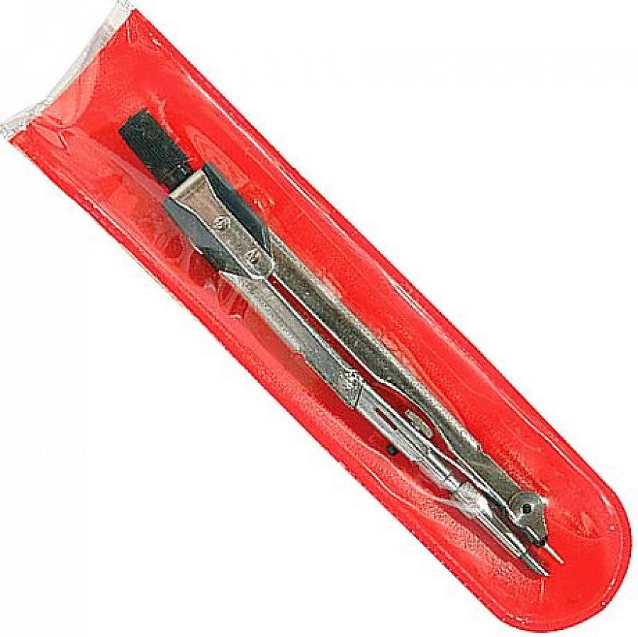 La longueur de l'outil est de 17 cm.Le diamètre maximum du cercle tracé est de 36 cm.Le kit comprend une aiguille et des mines de rechange. Tous les articles sont emballés dans un étui en plastique.