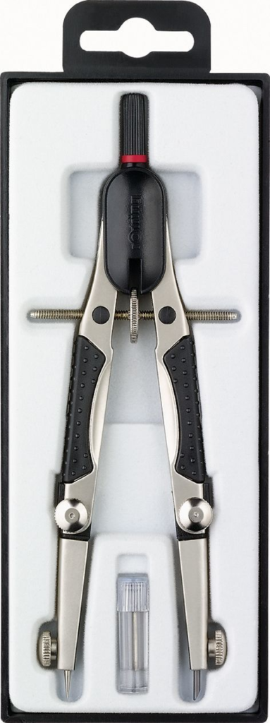 Au lycée, un appareil pour dessiner des cercles est nécessaire non seulement pour le dessin, mais aussi pour la géométrie. Une grande précision dimensionnelle est requise. Les composants de la boussole doivent être fixés de manière rigide et ajustés à la taille souhaitée. Selon le type de ligne, le stylet est remplacé par la dureté correspondante.