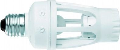 Le détecteur de mouvement infrarouge chinois Camelion LX-451 occupe la cinquième place du classement. Un tel dispositif est conçu pour activer et désactiver automatiquement le système d'éclairage, ayant des contacts sous la forme d'une base standard, qui peut être vissée dans une douille d'ampoule classique. L'ampoule elle-même est insérée dans le corps de la veilleuse, qui fournit un éclairage dans une pièce sombre. L'appareil a la capacité de le programmer pour qu'il s'éteigne automatiquement à certains intervalles, de 5 secondes à 8 minutes. La hauteur d'installation recommandée et déclarée par le fabricant est de 3 m.La couleur du boîtier de l'appareil est blanche.