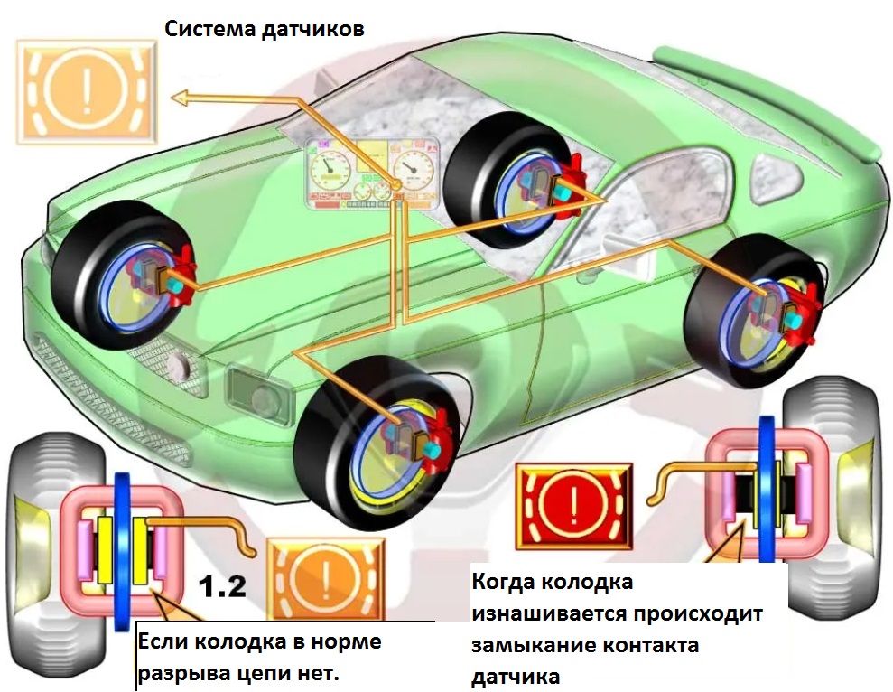 En plus de l'avertissement, le mécanisme aidera à estimer le nombre de kilomètres restant avant de changer les plaquettes. Les capteurs sont à un ou plusieurs étages, ces derniers ont une chaîne de résistances situées à différentes hauteurs dans un boîtier en plastique. Lorsque la première ligne de contacts se rompt, le centre d'information du véhicule commence à calculer la durée de vie restante des plaquettes. Cela utilise diverses entrées telles que le kilométrage, la vitesse des roues, la pression, la température d'éclatement et le temps du système de freinage.