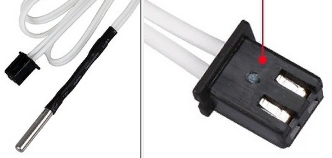 Capteur haute température à thermistance. La tige est en acier inoxydable, le fil (blanc) est isolé. L'appareil peut remplacer le thermocouple de type K d'origine.