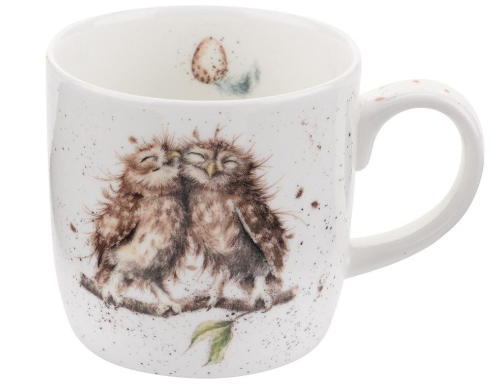 La porcelaine blanche banale à l'effet vieilli est animée par des images réalistes d'animaux, à l'intérieur comme à l'extérieur. Vous pouvez choisir une tasse avec un chat, un lapin, une paire de hiboux ou un martin-pêcheur.