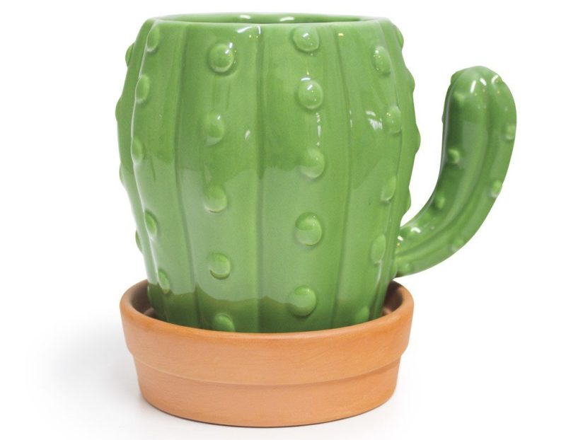 Une autre idée de design folle à un prix incroyablement élevé est une tasse en forme de cactus dans une base en forme de pot de fleurs. Soit dit en passant, le support peut être utilisé comme tasse pour les sachets de thé usagés ou comme couvercle.