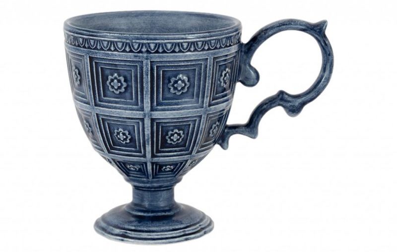 Quelque chose entre un gobelet médiéval et une tasse à café semble inhabituel et beau.Une couleur bleu profond, un ornement géométrique convexe et un noble effet de vieillissement font du produit, sinon une œuvre d'art, du moins un objet de collection, à coup sûr.