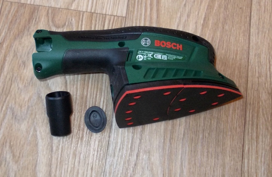 Cet échantillon peut être attribué à la gamme de multi-outils. Idéal pour les endroits difficiles d'accès et les petites surfaces. L'appareil utilise la technologie Bosch Sineon Chip, grâce à laquelle le niveau de charge de la batterie est consommé de 20% en moins. La semelle se compose de deux éléments - ils peuvent être utilisés séparément les uns des autres et y attacher séparément des feuilles abrasives, ainsi que les faire pivoter. Il est possible de brancher un aspirateur domestique.