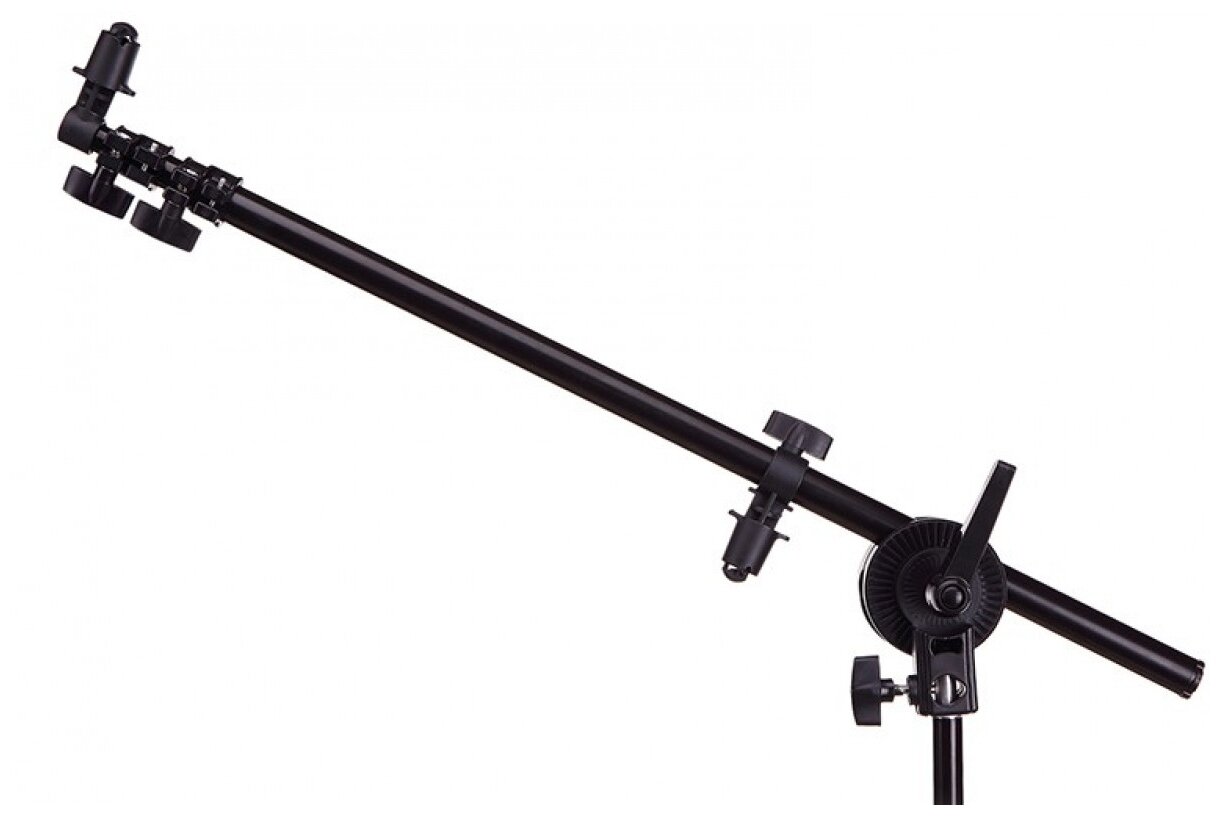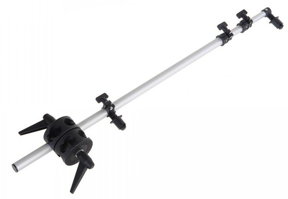 Ce modèle universel est idéal non seulement pour les réflecteurs, mais aussi pour les fonds dans un cadre métallique. La longueur de la barre transversale pliée n'est que de 56 cm et dépliée, elle est de 140 cm.Sur les bords de la tige, il y a des pinces en caoutchouc pour serrer le réflecteur. Grâce à un alliage d'aluminium léger, la barre transversale pèse moins d'un kilogramme, elle est donc idéale pour les prises de vue en extérieur.
