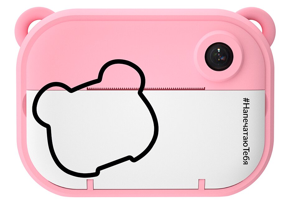La face avant a une inscription verticale #PrintYou. Le panneau est divisé en 2 parties : la partie supérieure (rose ou bleue, avec une lentille encastrée dans le corps), la partie inférieure (blanche, s'ouvre, il y a un compartiment à papier en dessous). Les photos sont imprimées en noir et blanc, petit format. Ils peuvent être signés et décorés.