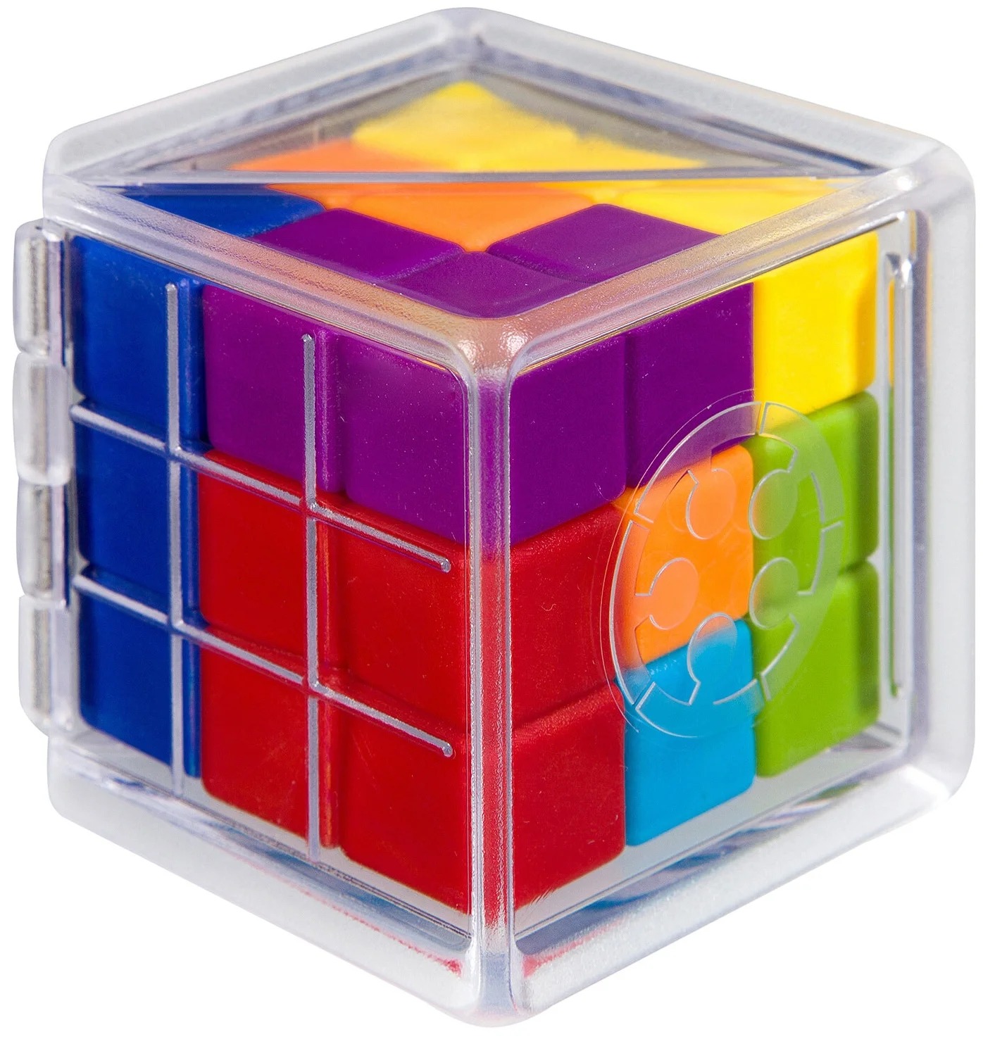 Les détails du constructeur sont cachés dans un cube transparent qui, une fois ouvert, devient le champ d'action principal. Ce modèle contient jusqu'à 80 tâches 3D de différents types de complexité, ce qui vous permet de captiver même un enfant plus âgé.