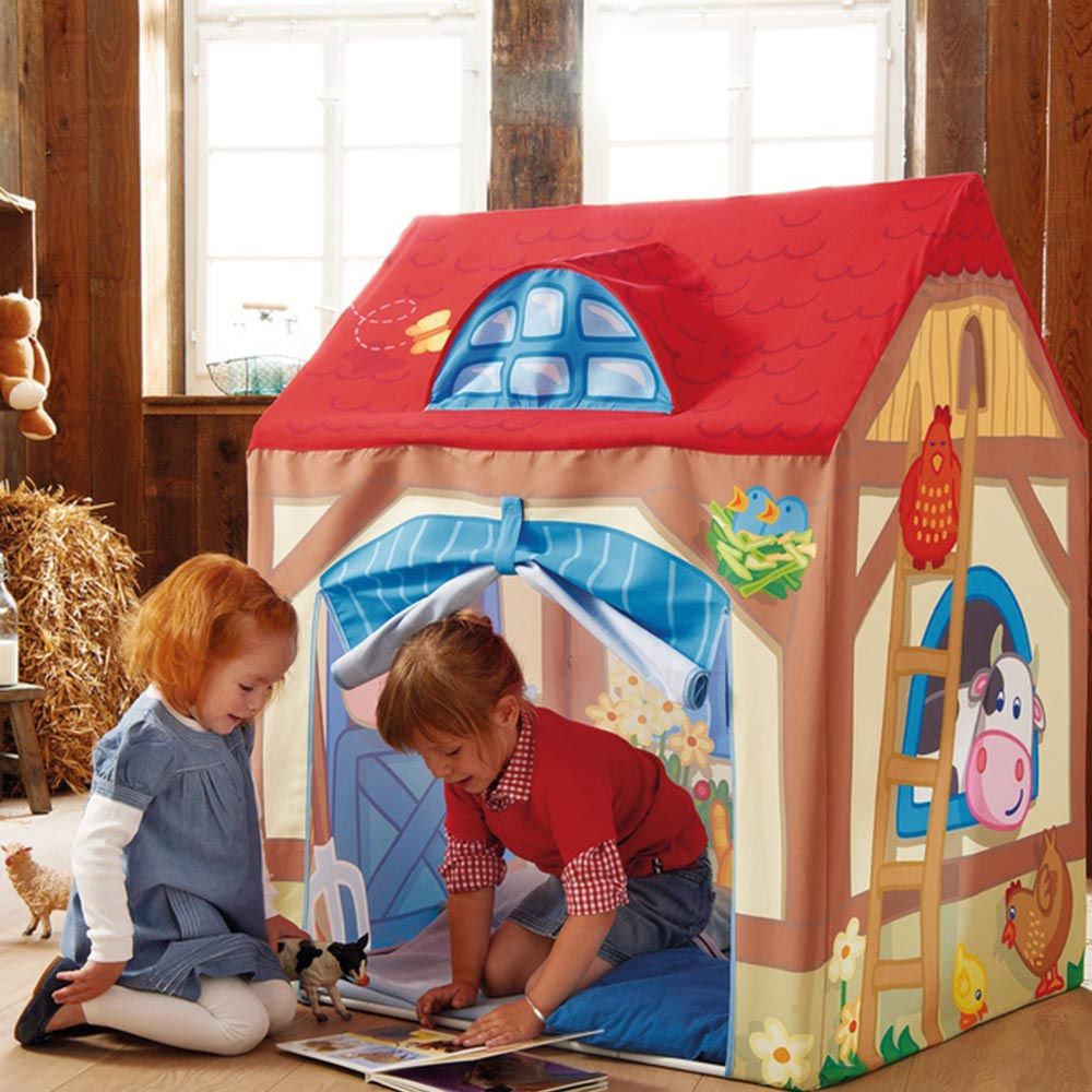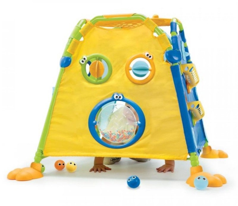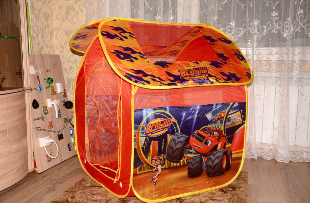 Ce modèle est conçu pour les enfants de plus de 1 an. Il est utilisé non seulement comme structure de jeu, mais aussi pour le développement du bébé. L'ensemble du design est équipé de poches et d'étagères supplémentaires sur lesquelles vous pouvez déplacer les figurines. La tente est livrée avec des balles, des clés et d'autres figurines pour le développement. Ce type de tente est utilisé uniquement pour des conditions intérieures. L'ossature métallique permet de garder la forme nécessaire.