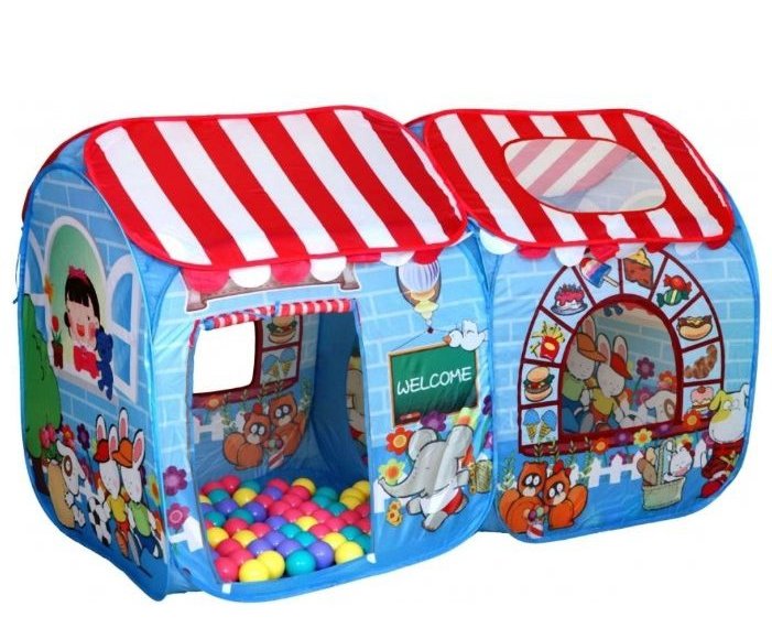 La tente est faite sous la forme d'un château. La maison est constituée d'un tissu qui ne nuit pas au corps de l'enfant. Il est recommandé d'utiliser la maison à l'intérieur. Livré avec boules en plastique.Il y a beaucoup d'espace à l'intérieur du produit, de sorte que le bébé peut ranger des jouets et jouer avec des amis. Le produit est très rapidement assemblé et rangé dans un sac spécial.