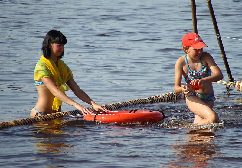 La plage jouxte le territoire du camp et est divisée en 3 zones. La plage est clôturée, il y a une tour de sauvetage, des auvents ombragés, des chaises longues et des vestiaires. Lors de la visite de la plage, des parasols et des nattes sont fournis. Lors du bain des enfants, des sauveteurs, des instructeurs et un médecin sont toujours à proximité.