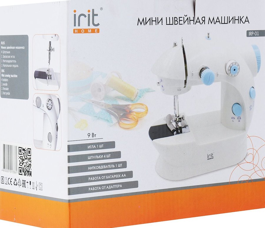 Avec cette machine, l'enfant comprend les premières bases de la couture. Et après cela, avec l'aide de l'appareil, il sera possible de réparer les vêtements. Réalise des boutonnières et des points droits. Le kit se compose d'un enfileur, de quatre bobines, d'une aiguille, d'une pédale et d'instructions précises. Sur IRIT IRP-01, tous les types de tissus peuvent être traités. La cadence de travail est réglementée. Pour une puissance suffisante égale à 4,8 watts. Les petites dimensions de l'appareil à coudre permettent de le ranger dans une commode ou sur une étagère d'armoire.