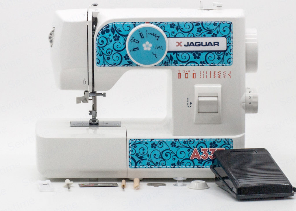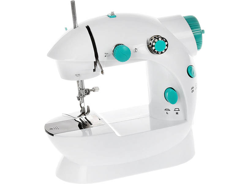 Le corps du modèle dispose de deux guide-fils, d'un régulateur de tension de fil, ainsi que d'un tiroir pour les petits objets. L'aiguille est recouverte d'un bouclier en plastique, ce qui garantit la sécurité lors de l'utilisation de la machine. Dispose de sonorisation et d'éclairage. Fonctionne avec une pédale à main. Le paquet comprend deux morceaux de tissu, un guide-fil et une rayure, 6 bobines de couleurs différentes.
