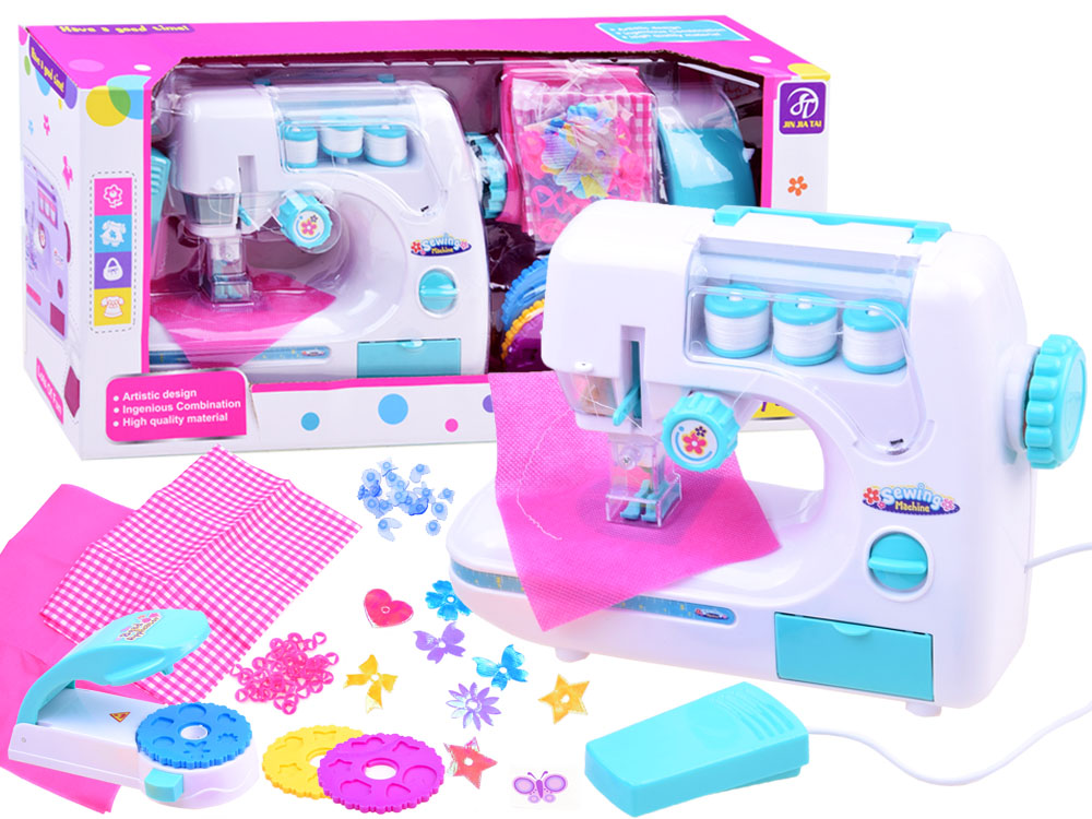 Un beau jouet multifonctionnel adapté aux jeunes couturières de 7 ans et plus. Avec l'aide de la machine, les enfants apprennent facilement à poser des lignes, à finir les bords du tissu, à faire des points d'arrêt et à effectuer de petites réparations sur les vêtements. L'appareil dispose de 10 opérations de couture. Le produit ne pèse que 2,6 kg.L'ensemble complet se compose du bloc d'alimentation, d'une pédale, de bobines et d'aiguilles de rechange. Pratique à utiliser ajoute un petit compartiment dans lequel vous pouvez ranger de petits accessoires pour la couture.