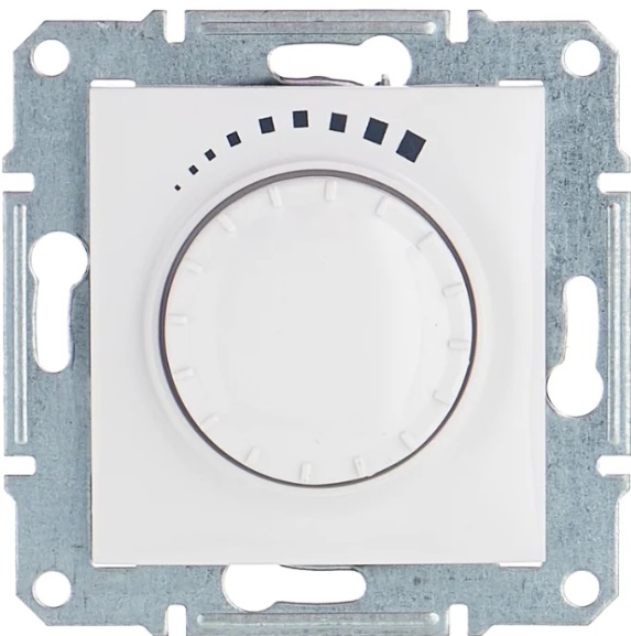 Ce gradateur de Schneider Electric appartient à la gamme Senda. Ce modèle a une installation cachée.Fabriqué par "Senda SND2200521" en plastique ABS blanc, qui résiste à toute contrainte mécanique et ne change pas de couleur à cause de la lumière du soleil. Pour régler la luminosité de l'éclairage, un mécanisme rotatif-poussoir est utilisé. La puissance maximale des lampes connectées est de 500 W. Cet appareil est facile à installer. Puisqu'il existe des bornes à serrage rapide avec des guides-fils spéciaux. De plus, l'extrémité nue du fil est protégée sous la forme d'un sectionneur, ce qui empêchera un court-circuit de se produire. De plus, le produit est doté de pattes puissantes qui fixent solidement le gradateur au mur.
