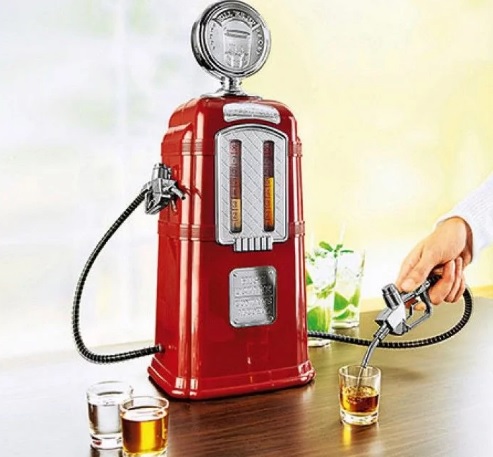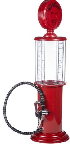 Les invités seront ravis d'une telle petite chose originale. La station-service est une véritable trouvaille pour les connaisseurs du style rétro. Un récipient rempli de deux types de boissons a deux tuyaux. Il remplit une double fonction. Le premier est un déversement rapide de jus, de limonade, de bière et d'autres liquides. Le second est le divertissement. Les personnes présentes à la vue d'un sujet aussi intéressant trouveront un motif de conversation et d'admiration.