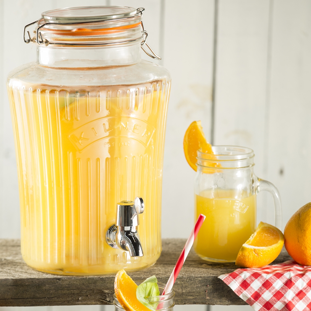 Dispenser Barrel est fabriqué sous la forme d'un baril et a un volume de 1 litre. Il deviendra un assistant fiable lors de toutes les fêtes, à la maison comme à la campagne. Excellente mise en table. Convient à toutes les boissons gazeuses ou alcoolisées : bière, limonade, jus, boisson aux fruits, vins divers. Le matériau du contenant est du verre. Le design est fait dans un style rétro, sur le corps se trouve le logo de la marque Kilner. Un robinet en plastique pratique, un couvercle étanche, un support pour placer le fût en position horizontale - tout est pensé ici.Distributeur particulièrement bon pour les boissons non alcoolisées pendant la saison chaude. Ne pas verser chaud, comme du thé ou du café. Grâce au bel emballage, cela peut être un bon cadeau. Un baril élégant ne laissera personne indifférent.