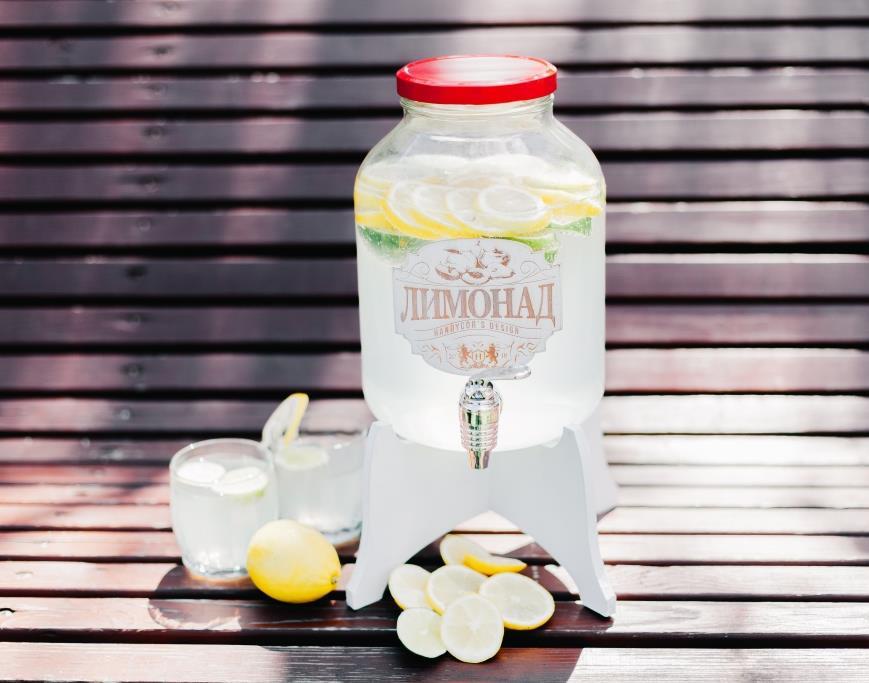 Une capacité intéressante de 3 litres est réalisée sous la forme d'une tasse de sport. Une telle limonade conviendra idéalement à un petit groupe de fans tout en regardant un match de football. Le liquide est versé dans la partie supérieure du récipient, puis les plats individuels sont remplis à travers un robinet pratique. Les invités seront surpris par la présentation inhabituelle, ce qui garantira une bonne humeur à tous les présents.