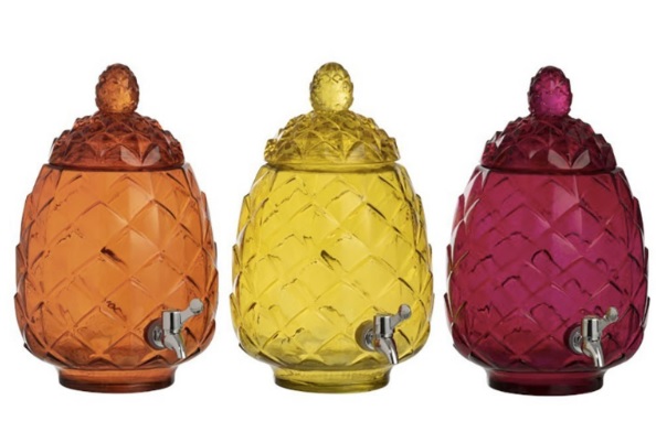 Les fabricants de distributeurs de boissons proposent de sortir de la situation. Un accessoire à la mode décorera une fête solennelle et au bureau, il ne sera pas superflu. À travers les parois de verre du récipient, vous pouvez apprécier les délicieuses couleurs et admirer les composants de fruits et de baies.