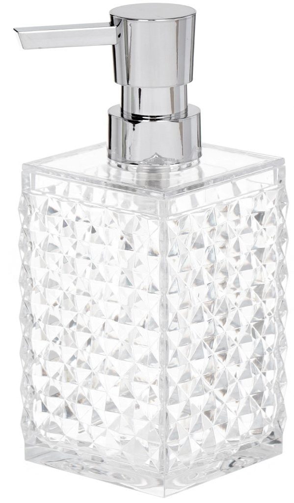 La solution de conception originale plaira aux femmes. Le récipient a un relief et le matériau pour sa fabrication est un plastique dense avec de petits motifs. En apparence, il ressemble à un décor de cristal. Mais si vous le laissez tomber accidentellement, le récipient ne se cassera pas et restera intact, même s'il tombe sur un carrelage ou dans un évier.