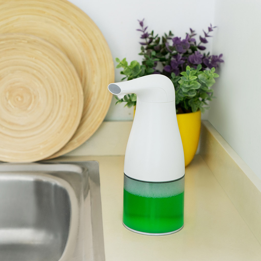 De petites dimensions 10*10*17 et un design pensé dans les moindres détails, ce qui rend l'appareil idéal pour être placé à côté de l'évier. Du savon liquide est versé dans le récipient, ainsi qu'un liquide vaisselle.