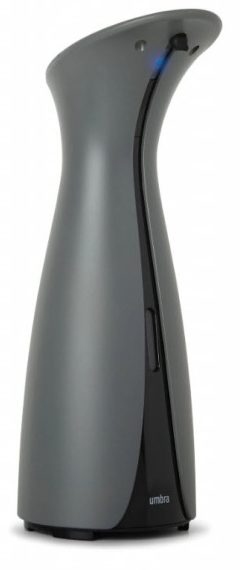 Un distributeur compact et élégant de fabrication canadienne d'Umbra décorera la salle de bain. Un élégant modèle noir et argent aux dimensions de 11,5x25,4x9 cm est en plastique résistant. 4 piles AAA, qui suffisent amplement au fonctionnement du modèle, assurent la fourniture de portions de savon aux mains levées sans interruption. Le volume du distributeur est petit - 255 ml.