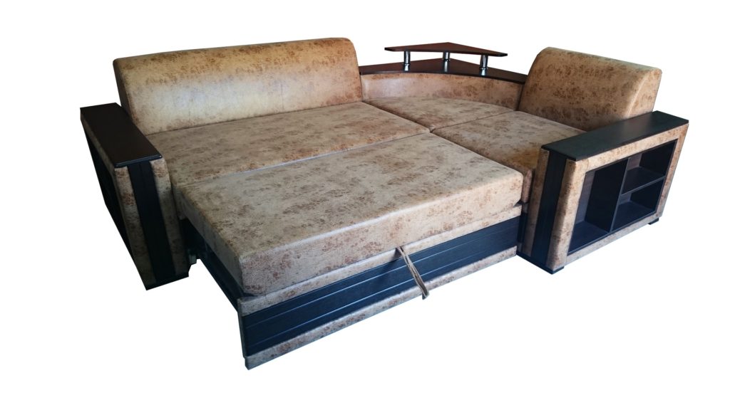 Un moyen facile de convertir la structure en couchette est le processus d'inclinaison du dossier vers l'arrière et d'extension du siège. Le seul inconvénient est la nécessité d'éloigner le canapé du mur pour créer de l'espace libre.
