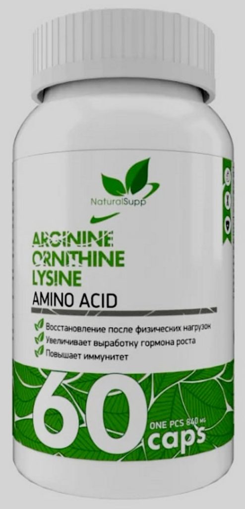Le supplément comprend, en plus de l'arginine, de l'ornithine et de la lysine. Il est en vente sous forme de gélules et de comprimés. La composition est emballée dans un pot. Le rapport des acides aminés est optimal. Avec des charges de puissance fréquentes, le produit favorise la croissance de l'hormone de croissance, réduit le niveau de graisse corporelle. Une caractéristique distinctive du produit - normalise le système immunitaire, réduit la fatigue, stimule le système nerveux central, améliore le métabolisme dans le système musculo-squelettique. Appartient à la catégorie des universels.