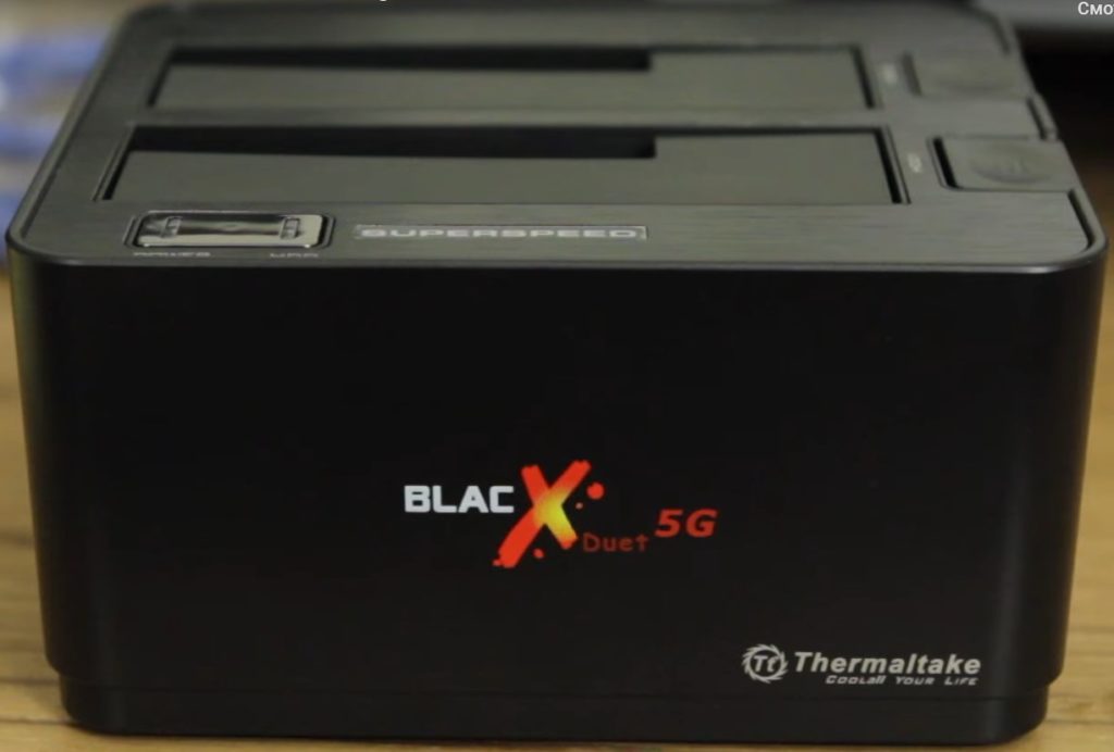 La station d'accueil de fabrication chinoise vous permet d'utiliser un port auquel plusieurs disques durs peuvent être connectés. Ce type d'appareil prend en charge les disques durs de 2,5 pouces et les disques durs standard de 3,5 pouces. De plus, vous avez le choix entre deux interfaces de données : eSATA et USB 2.0. Le coût moyen est de 5 870 roubles. Sur la paroi supérieure de l'appareil, il y a deux fentes utilisées pour l'installation. Il y a aussi un bouton pour retirer le disque dur. Sur le devant se trouvent des indicateurs d'activité du disque dur. Thermaltake BlacX Duet ne s'applique pas aux équipements de grande taille. Sa largeur est de 14 cm, sa hauteur - 7 et sa longueur - 12 cm et son poids atteint 334 grammes. À l'arrière, il y a des ports de données tels que :