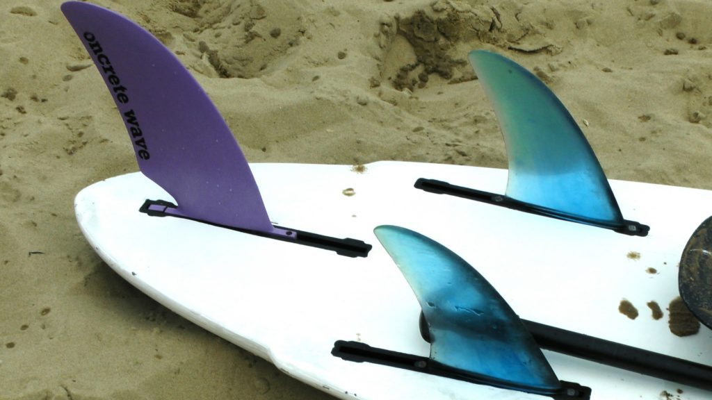 Équipement supplémentaire - palmes (de l'anglais "fin" - palmes).Ils ont été inventés par Tom Blake pour guider le mouvement de la planche et influencer la maniabilité. Leur présence, leur quantité et leur emplacement sont importants pour les professionnels. La plupart des longs ont une grande nageoire ou ensemble - une grande nageoire au milieu et 2 petites nageoires sur les côtés.