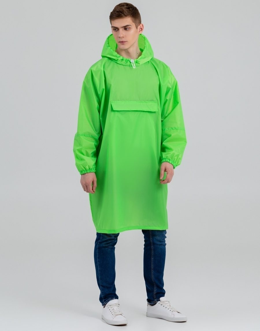 La capuche est volumineuse, vous pouvez même l'enfiler sur un chapeau. Les coutures sont étanchées, selon les promesses du vendeur elles résisteront à toutes les intempéries, elles ne laisseront pas passer l'eau et le vent. Couleurs - au choix, du vert clair, rouge vif, bleu, noir.