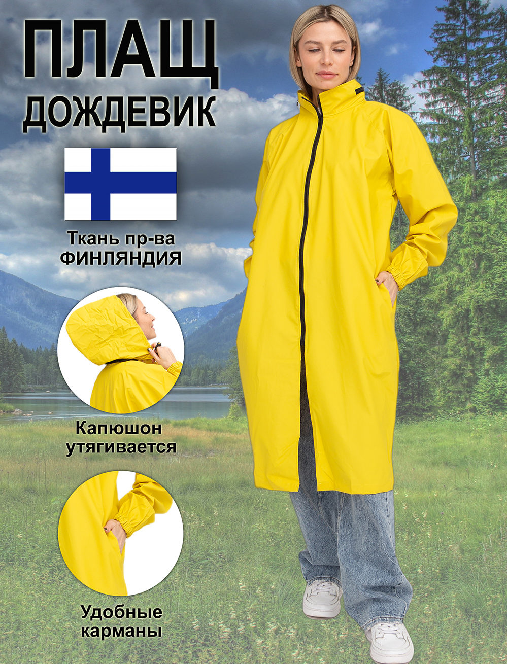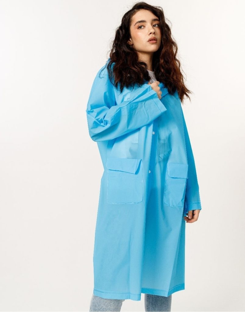 Fabriqué en acétate d'éthylvinyle, assez long, avec poignets réglables, fermetures à boutons. Ce modèle a déjà des poches avec de larges rabats extérieurs - vous pouvez y mettre votre téléphone, vos clés en toute sécurité, rien ne se mouille. Les manches sont larges - vous pouvez l'emporter en toute sécurité en été comme en automne pour le porter par-dessus une veste chaude. Livré avec un étui.