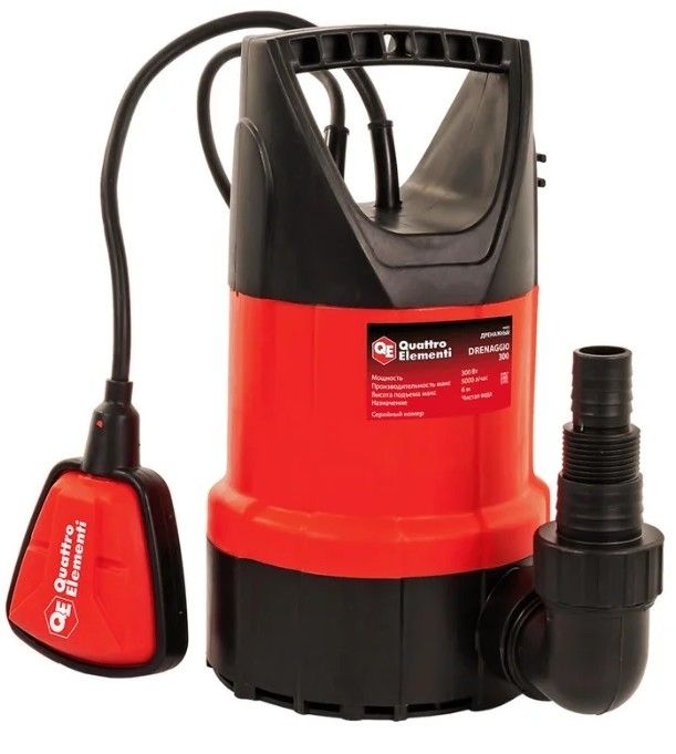 La plus puissante des pompes considérées. Utilisé pour pomper l'eau sale. Peut être utilisé pour irriguer la zone. Nécessite une installation correcte, dans laquelle il est suspendu sans toucher le fond du réservoir (réservoir) pour empêcher l'aspiration de limon et de débris du fond. La pompe est équipée d'une commande automatique de marche à sec sous la forme d'un interrupteur à flotteur. Hauteur de levage maximale de l'eau - 10 mètres, productivité - 13,98 m3/h