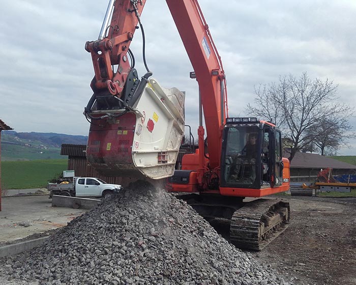 Cette méthode peut être qualifiée d'économique, car la procédure de concassage peut avoir lieu directement sur le chantier de construction, il n'est donc pas nécessaire de dépenser de l'argent supplémentaire pour l'enlèvement et le traitement ultérieur des matériaux. Les avantages des godets concasseurs incluent une productivité élevée avec des coûts d'exploitation minimes.