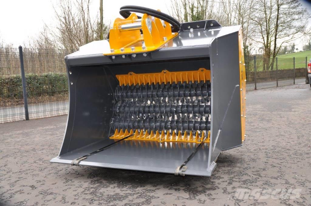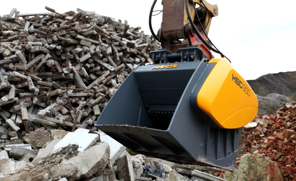 La conception simple du godet vous permet de charger instantanément les déchets de construction et de décharger le matériau broyé, qui peut être réutilisé pour la construction d'objets. Le rotor monté à l'avant manipule facilement les structures en béton armé, les briques, les tuiles, le verre, le béton, les matériaux naturels et l'asphalte. Grâce à des nœuds d'interface solides, le mécanisme de broyage fonctionne pleinement même en présence de sol humide ou de bois. Le godet est livré avec un ensemble d'éléments de coupe, lors du changement, vous pouvez régler le degré de broyage des déchets - 0,3 ... 100 mm. Le coût du godet concasseur : à partir de 1500000 roubles.