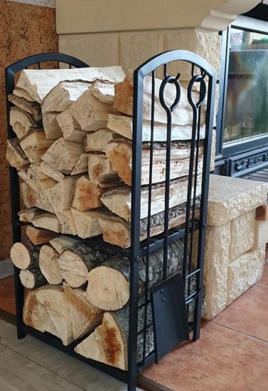 Cet exemple de dispositif de stockage de bois de chauffage a un double objectif. Son corps a deux étagères pour les bûches - il est censé placer de grandes cales sur la partie inférieure, qui conviennent mieux pour faire de grands feux à l'air libre (ou pour le séchage et la coupe ou le sciage ultérieur), et le bois prêt à être allumé est stocké sur celui du haut. Le kit comprend également un ensemble de cheminée, qui comprend : tisonnier, pelle, brosse et pinces. Tous ces accessoires sont idéalement placés sur des crochets spéciaux situés sur les parois latérales. Le kit est également livré avec des attaches spéciales pour le montage. Pays d'origine - Canada. Le coût recommandé pour les chaînes de magasins est de 5600 roubles.