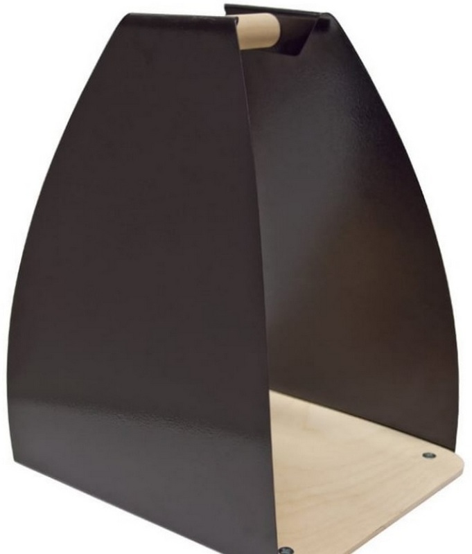 Ce modèle est en métal, a un design très simple, peint en noir avec une peinture spéciale anti-corrosion. Conviendra parfaitement à la fois pour le placement dans la rue (mais seulement pour une saison chaude et sèche) et à l'intérieur. Conçu pour un rangement soigné et compact des bûches pour la cuisinière, le barbecue, le grill. Dispose d'un design laconique. Le métal a une épaisseur d'un millimètre et le fond et la poignée sont en bois durable. Livré avec pieds en métal. Le volume approximatif est de 0,6 mètre cube de bois de chauffage. Le coût recommandé pour les chaînes de magasins est de 2100 roubles.