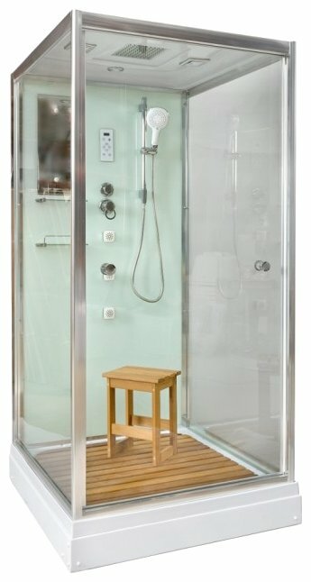 Produit carré avec portes coulissantes en verre de 5 mm d'épaisseur. Hauteur - 220 cm Les Hydrobox de ce fabricant sont réputés pour leurs doubles roues fiables pour un meilleur fonctionnement de la porte. La palette antidérapante en bois est la marque de fabrique de la marque. Traité avec les matériaux nécessaires contre la destruction et la floraison. A l'intérieur il y a un miroir, deux étagères. Trois jets intégrés pour l'hydromassage du dos. Une douche à effet pluie est fournie.Réalisation d'un écran tactile moderne pour contrôler la ventilation, la radio, l'éclairage.