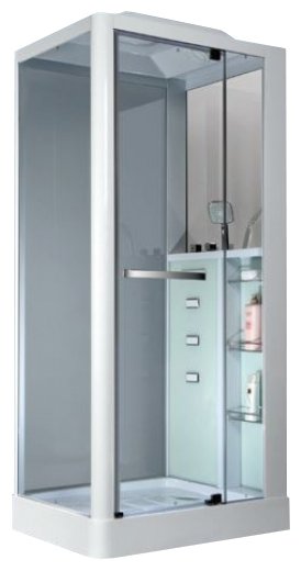 Le modèle dispose d'options supplémentaires : éclairage au plafond, écran tactile, radio, hydromassage du dos, fonction pluie. Ventilation faite, qui peut être ajustée sur le panneau de commande. La conception comprend un grand miroir à l'intérieur de la boîte, pratique pour les procédures cosmétiques et trois étagères spacieuses.