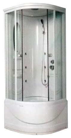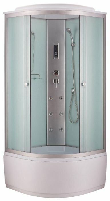 Modèle décent du fabricant russe. L'acheteur a la possibilité de choisir la couleur blanche ou noire des parois arrière. Le verre coulissant avant peut être dépoli ou transparent avec une épaisseur de 4 mm. Les profils et les poignées de porte sont en acier chromé. Le modèle à paroi pleine a la forme d'un quart de cercle. Palette en acrylique renforcé d'une hauteur de 42 cm pouvant supporter jusqu'à 210 kg.Il est de taille compacte et peut tenir dans de petits espaces. Une attention particulière doit être accordée aux options supplémentaires. Faites de l'hydromassage avec 6 modes, douche tropicale. En présence d'un siège confortable pour les procédures de bain. Les pieds réglables vous aident à choisir la hauteur optimale de la structure. Les acheteurs notent la facilité de montage et la facilité d'utilisation.