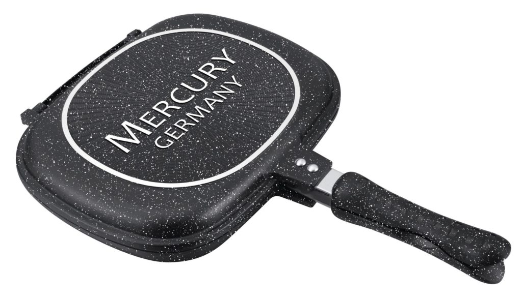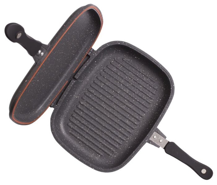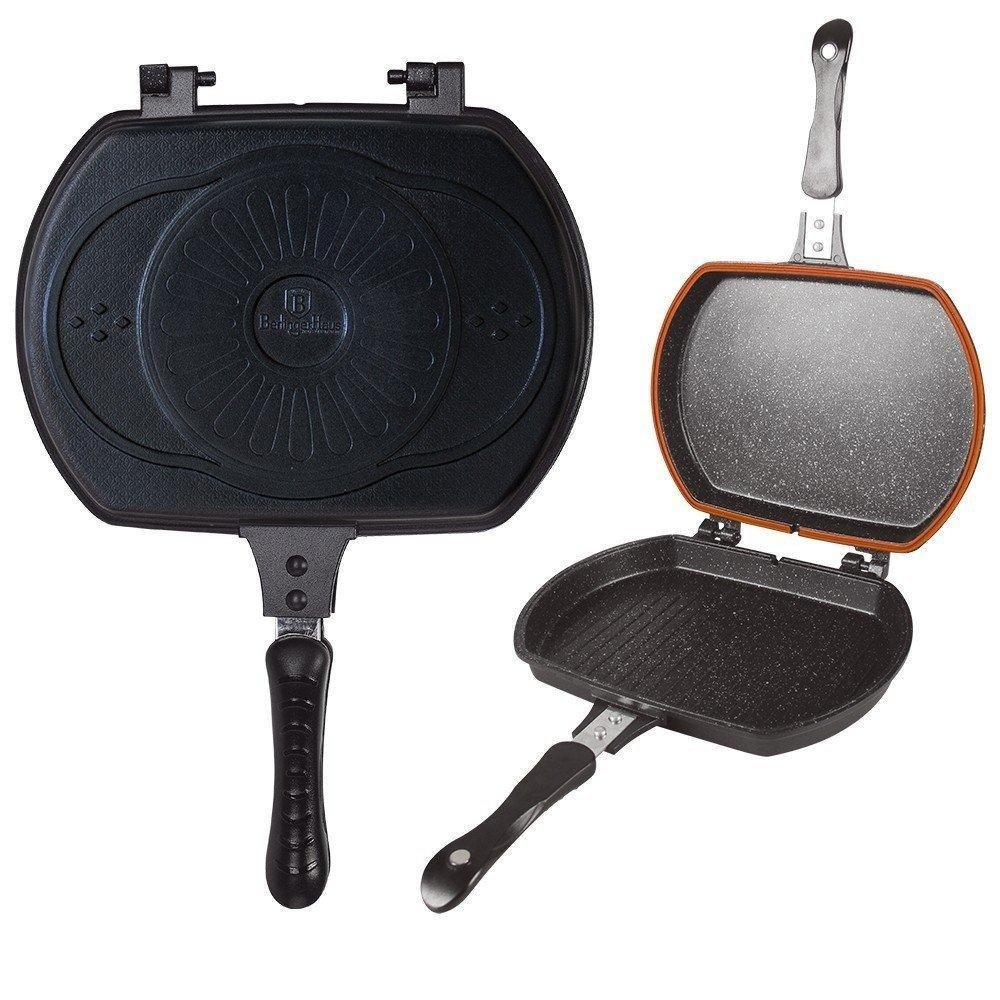 Une excellente option pour la catégorie des personnes à petit budget.Malgré le prix bas, le produit a une qualité et une fonctionnalité décentes. La surface de travail est en aluminium traité avec un revêtement antiadhésif en marbre. Les produits peuvent être utilisés sur des cuisinières en vitrocéramique, à gaz et électriques. La chaleur est répartie uniformément sur toute la surface des deux portes. Par conséquent, les aliments sont cuits rapidement, sans brûler.