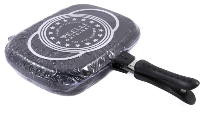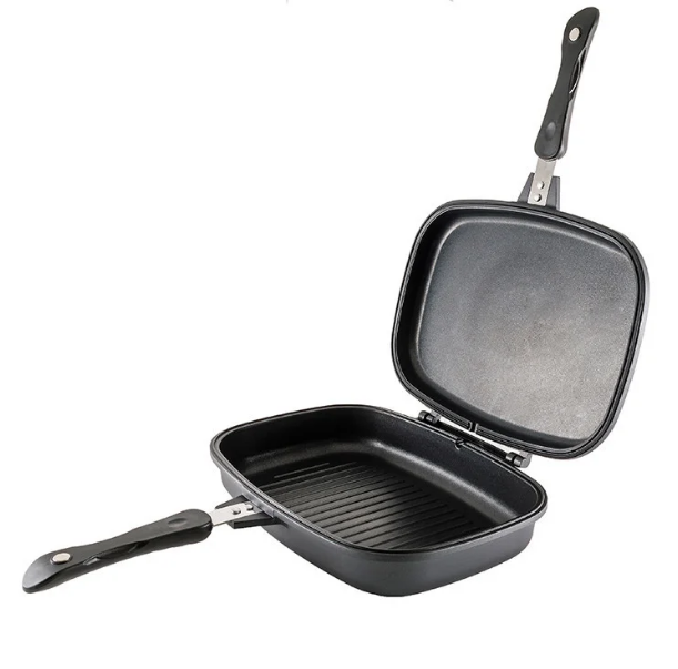 La sauteuse double face est équipée de 2 anses réfractaires.Le matériau de fabrication a une telle texture qu'il reste toujours froid. Pour ouvrir les deux ailes, vous devrez déployer des efforts physiques. Les deux moitiés se collent sous l'influence d'aimants puissants.