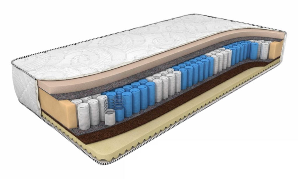Il occupe la position la plus haute, car il possède un bloc ressort indépendant. Les ressorts séparent les housses en tissu individuelles. Ainsi, la fonctionnalité du modèle est augmentée plusieurs fois. 512 sources sont intégrées dans chaque mètre carré. Tous les côtés sont recouverts de feutre, il nivelle visuellement la surface et empêche les ressorts de dépasser. Un côté est assez doux à partir du matériau capable de prendre la forme du corps humain, la partie dure est en fibre de coco, qui est pressée avec une solution spéciale de latex.
