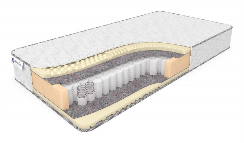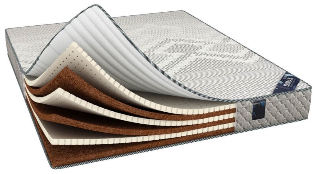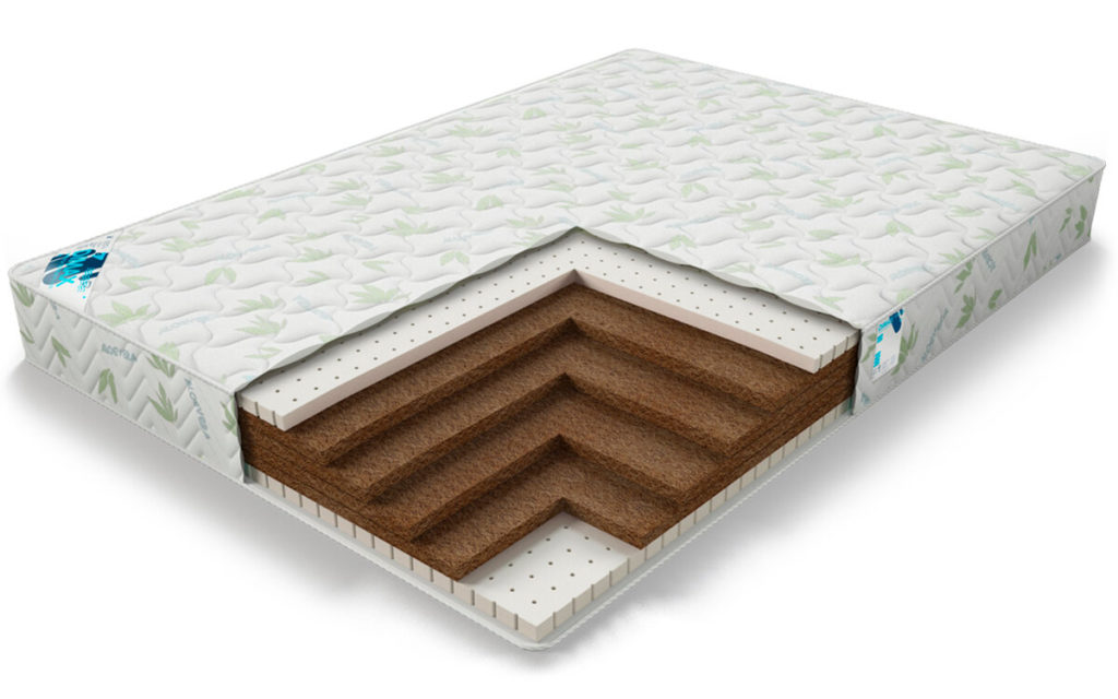 Ce matelas double sans ressorts se compose de six couches : les fibres de coco sont remplacées par des couches de latex. Toutes les couches ont une épaisseur de 3 cm.Concernant la rigidité, ce modèle est moyen, il est donc idéal pour les personnes ayant une colonne vertébrale en mauvaise santé. Le constructeur a développé deux options, à savoir, d'une part, une rigidité moyenne, d'autre part, plus élevée.Une housse de qualité plutôt élevée en matériau matelassé compacté à base de coton - jacquard.