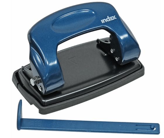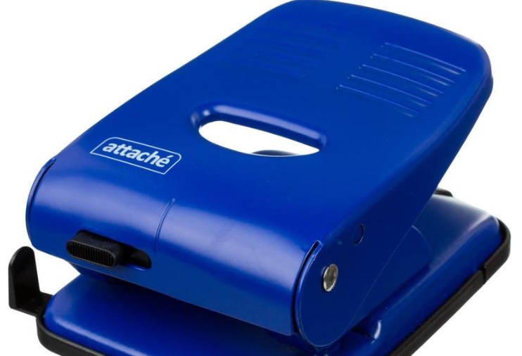 L'unité perfore avec précision les feuilles de papier. Le design classique et la couleur bleue du boîtier en métal s'intégreront harmonieusement dans n'importe quel intérieur. La surface texturée du corps empêche les mains de glisser pendant le fonctionnement. En un clic, vous pouvez percer des trous dans une pile de papier épaisse (environ 40 l). Les deux trous standard sont espacés de 80 mm. Les éléments de coupe sont en métal de haute qualité, conçus pour un fonctionnement à long terme. Le conteneur à déchets pratique s'ouvre et se ferme facilement. Il existe une règle avec des divisions qui vous permet de fixer le papier à une distance donnée. Le repère sur la règle 888 permet de faire 4 trous. Le produit coûte à partir de 759 roubles.